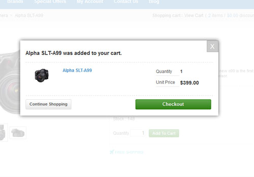 We've developed a new feature called "Add to cart notification" which its functions is to notify visitors every time they add their products into cart. The pop-up window displays for visitors to choose to continue shopping or go to the next page for doing the checkout process.